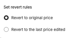 - Revert to Last Edited Price: Automatically restores the product/collection price to the last edited price in the Compare-at-price field.