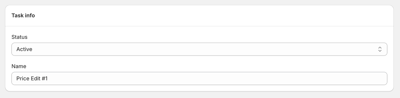 - Name: Give your Price edit task a name. Customers won’t see this - it’s just for you to manage your task list.