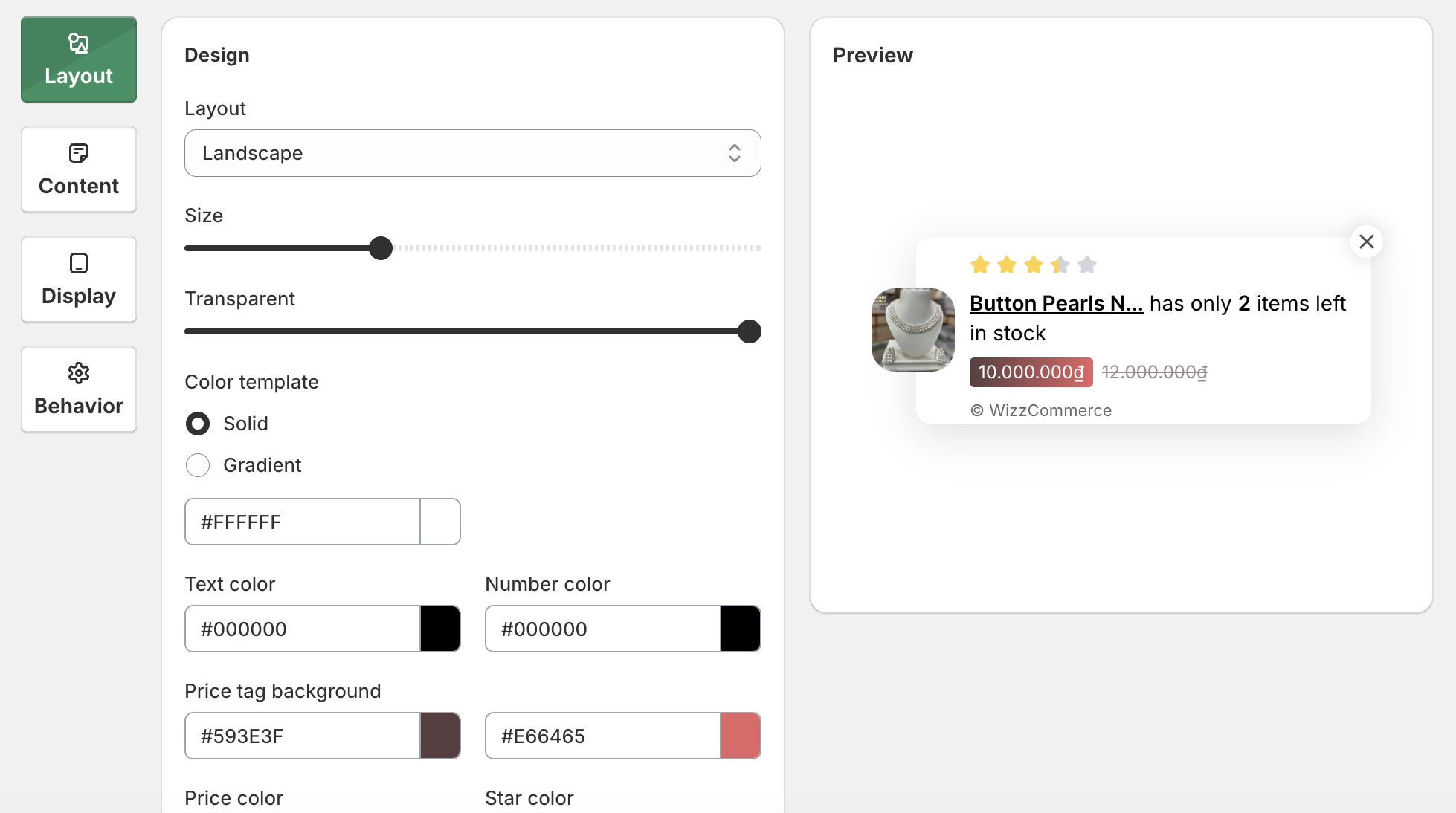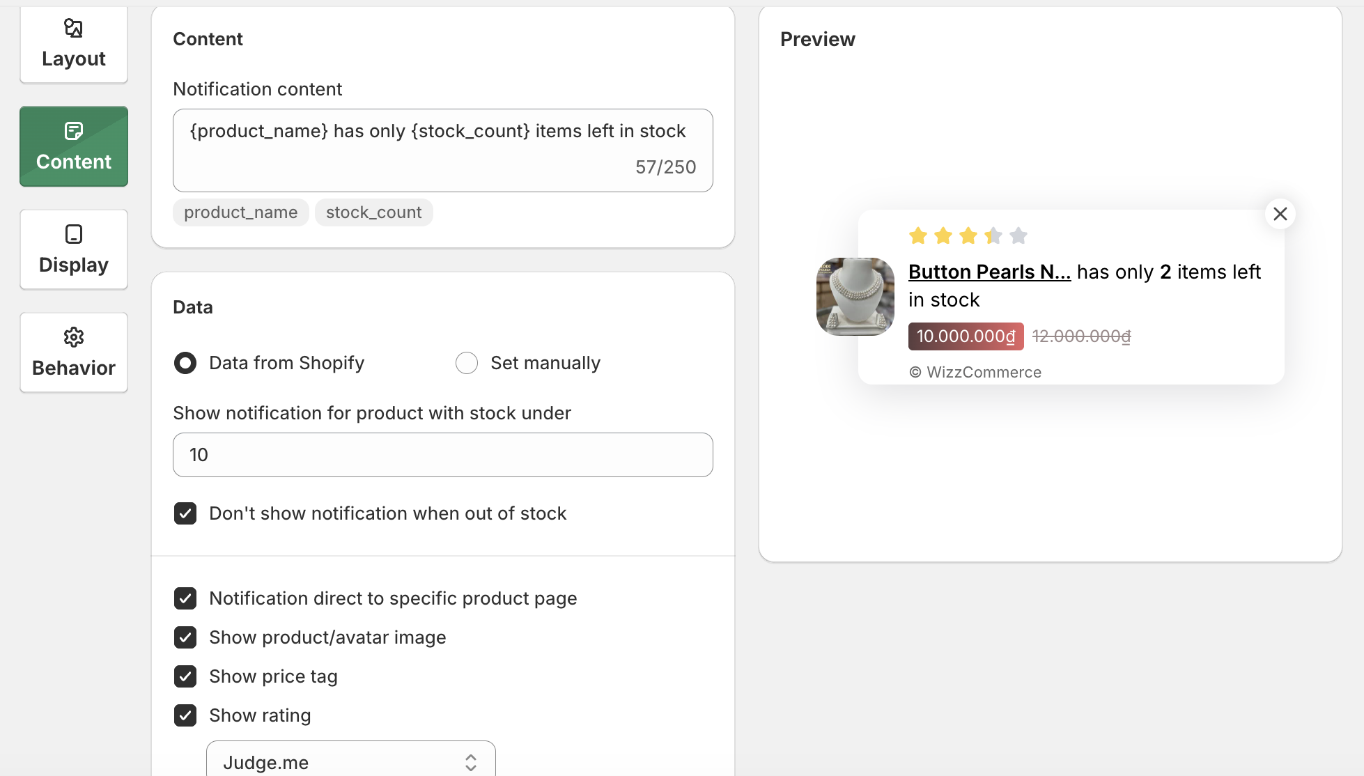 Step 1: From the Notification page, choose "Floating Notification" then "Low stock notification"