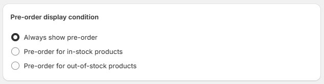 - Always show pre-order: The button is always visible, regardless of inventory.