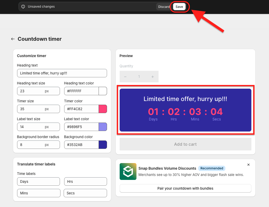 Step 2: Customize the content and color of the countdown timer to match your store's theme