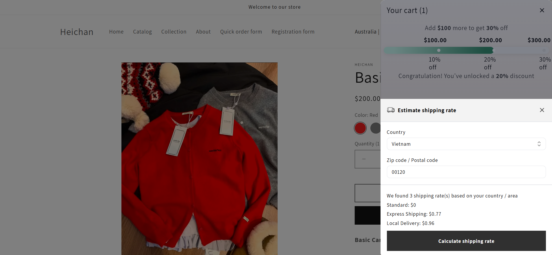 - Click the Calculate shipping rate button to view real-time shipping rate estimates.