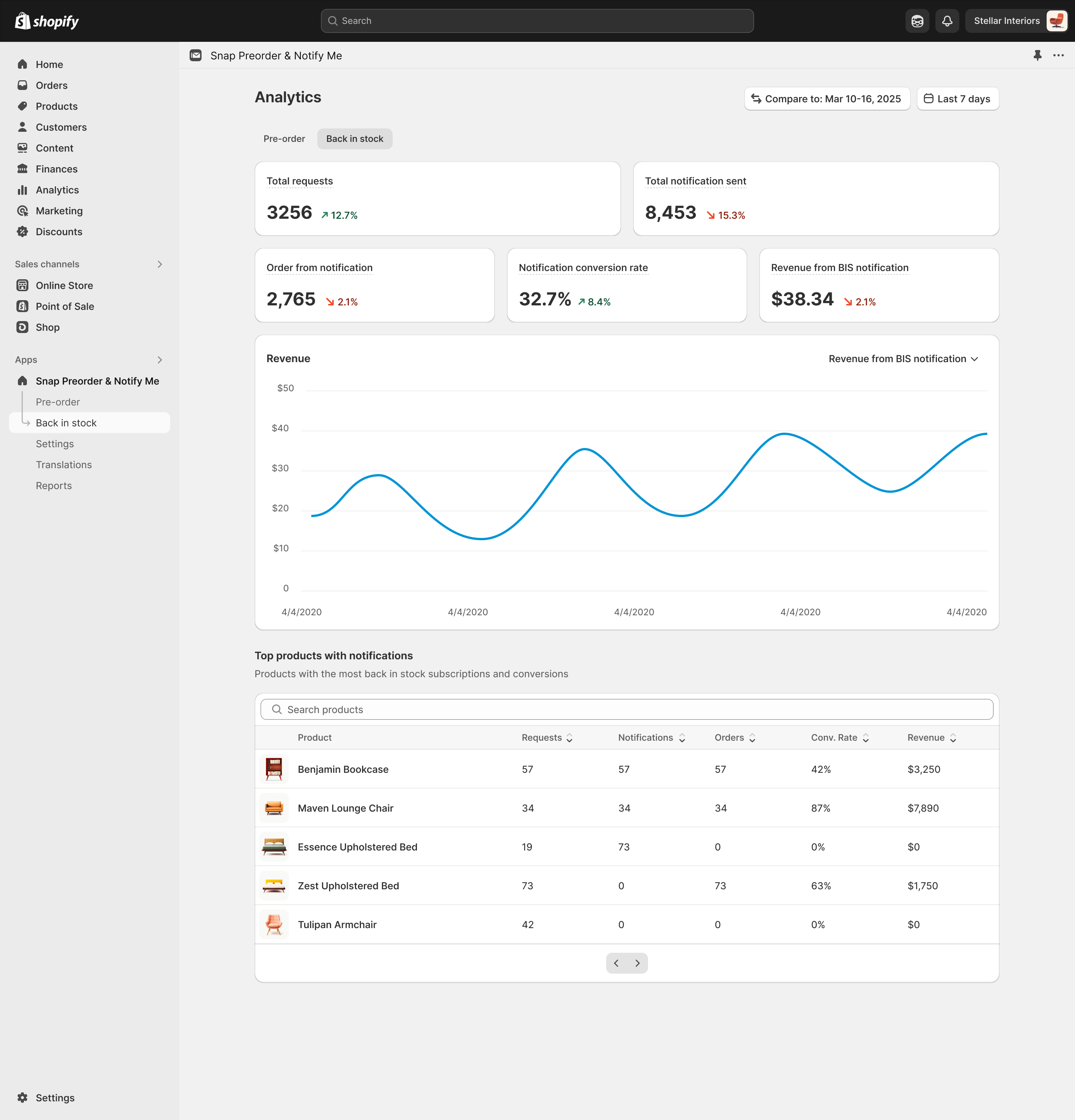 See performance by-product to identify which products drive the most interest and conversions when back in stock: