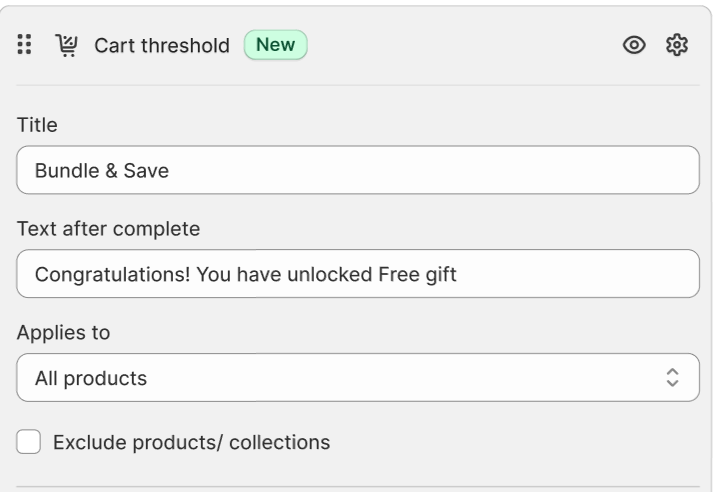 The Cart Threshold feature in Snap Slide Cart encourages customers to add more items to their carts by showing exciting, progressive offers based on their cart quantity. It's perfect for boosting your store's average order value while fostering a fun and engaging shopping experience.