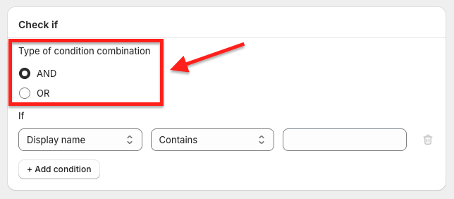 - Choose the Type of condition combination: