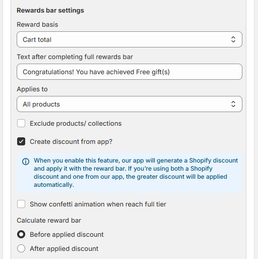 - Calculate how the reward bar will process the cart value: before or after applying the discount.