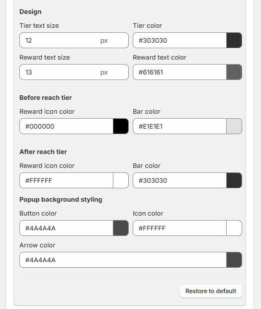 - Text after completing full rewards bar: Title of total rewards bar when customers reach full milestones