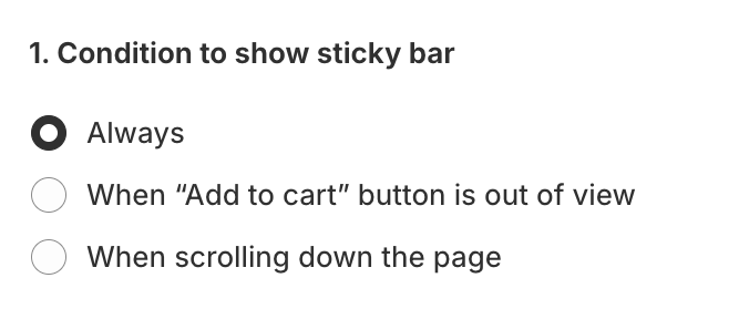 - When ATC is out of view: The sticky Add to Cart button only appears when the original Add to Cart button is no longer visible on the screen (for example, when you scroll past it).