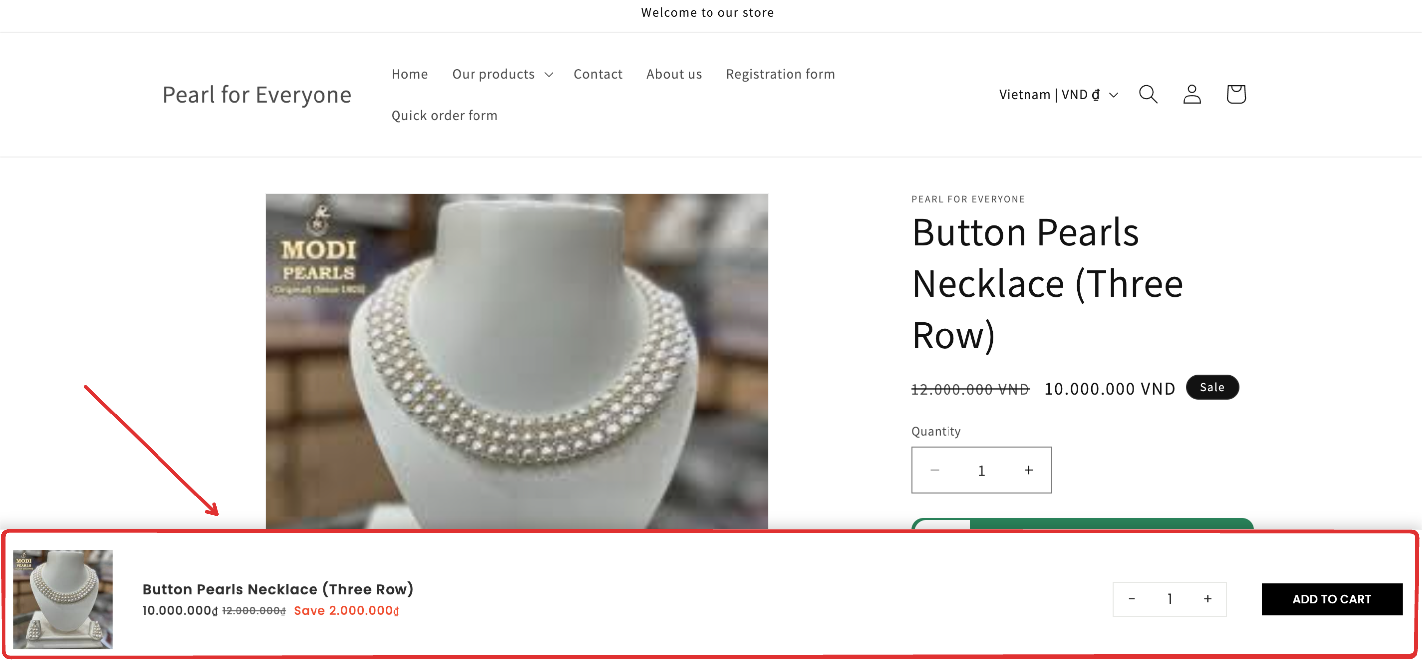 - When scrolling down the page: The sticky Add to Cart button shows up when you scroll up or down the page.
