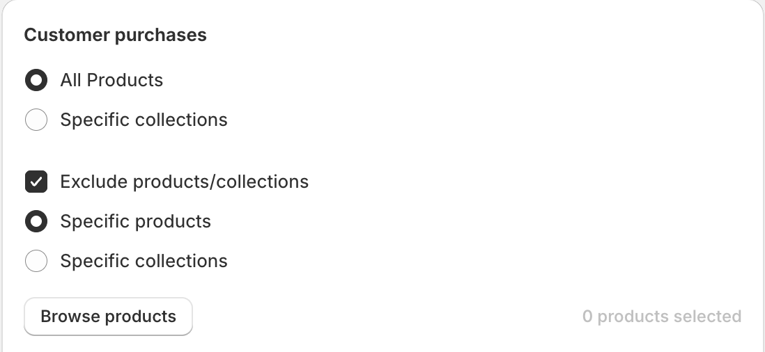- Specific collections: You need to select specific collection(s) that are available for the offer.