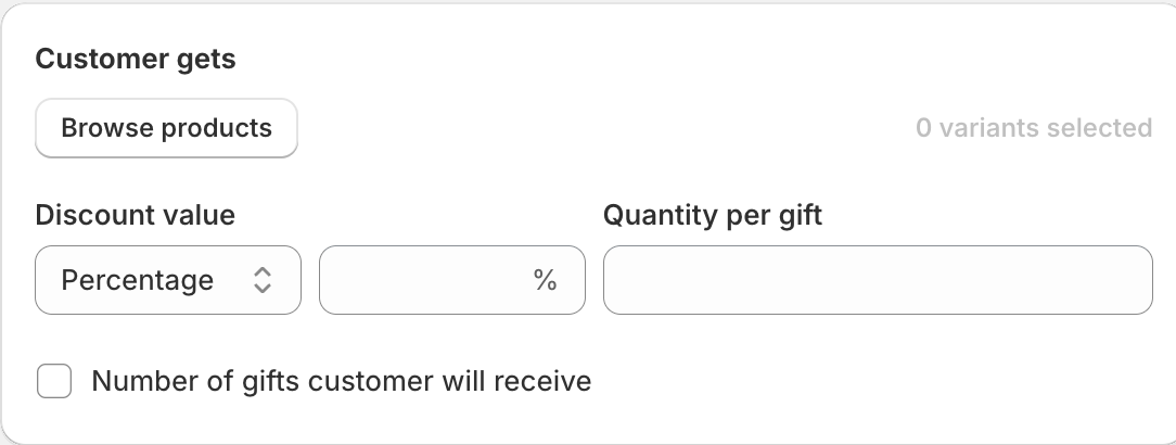 You have the option to give the gift as free or discounted products by amount or percentage